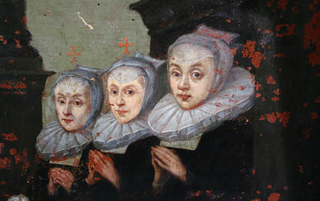 Oberflächenreinigung, Verleimung geöffneter Fugen, stabilisierende Maßnahmen, Malschichtfestigung, Kittung von Löchern und Malschichtverlusten, Retusche